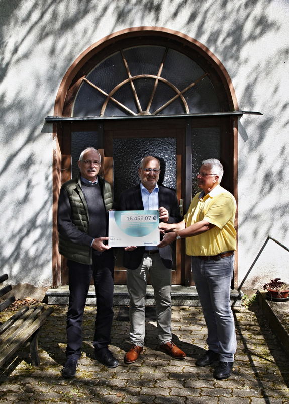 Staatsekretär Roland Krämer vom Umwelt- und Verbraucherschutzministerium übergab im April 2018 Bürgermeister Franz Josef Barth und dem stellvertretenden Ortsvorsteher Klaus Kuhn den Bewilligungsbescheid für Sanierung.
