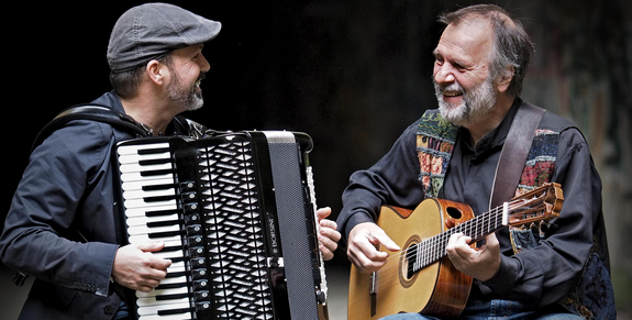 Am französischen Nationalfeiertag, 14.07.2022, ist das Duo um Nino Deda und Michael Marx zu Gast in Nonnweiler-Kastel. Akkordeonist Nino Deda und Gitarrist Michael Marx werden ihr aktuelles Programm „Bach-Balkan-Tango“ auf dem Lothringer Platz zum Besten geben. Gemeinsam zelebrieren sie die Kunst des Duo-Spiels von Tango bis Bach,von Balkanfolklore zu ungemein spannenden Improvisationen. Ihr Zusammenspiel ist einzigartig,wie aus einem Guss verschmelzen die Klänge von Akkordeon und Gitarre zu einem großen Ganzen. Es entsteht eine Musik,die nicht kopflastig daherkommt,sondern aus dem Herzen und der Seele fliesst.